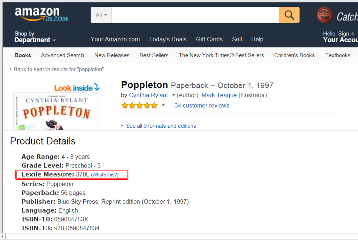 另外,由於有進行LEXILE分級的書籍數量日益增多,因此各大網路書店的分類中也陸續增設Lexile的欄位提供購買者參考。 (上圖為amazon的書籍截圖示意)。