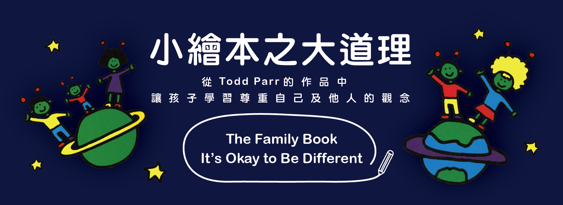 Todd Parr 的系列書還有以下多本,每本都適用簡單卻又具意義的文字,讓孩子來認識自我、建立自信並培養孩子的世界觀喔!很推薦大家找時間根據需要的主題內容,帶領孩子一同共讀喔!