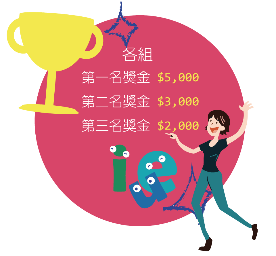 ˙各組中最多按讚數&評審委員評分最高者,即可將豐富大獎帶回家,最高獎金達$5,000元