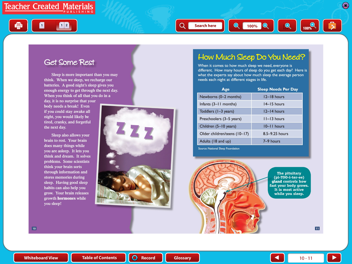 Audio recordings of books can be used in a whole-group setting, listening center, or small-group setting with struggling readers or English language learners to build fluency.